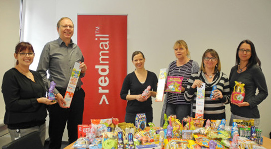 Glücksbote Osteraktion: >redmail Mitarbeiter sammeln für Kinder aus sozial schwachen Familien